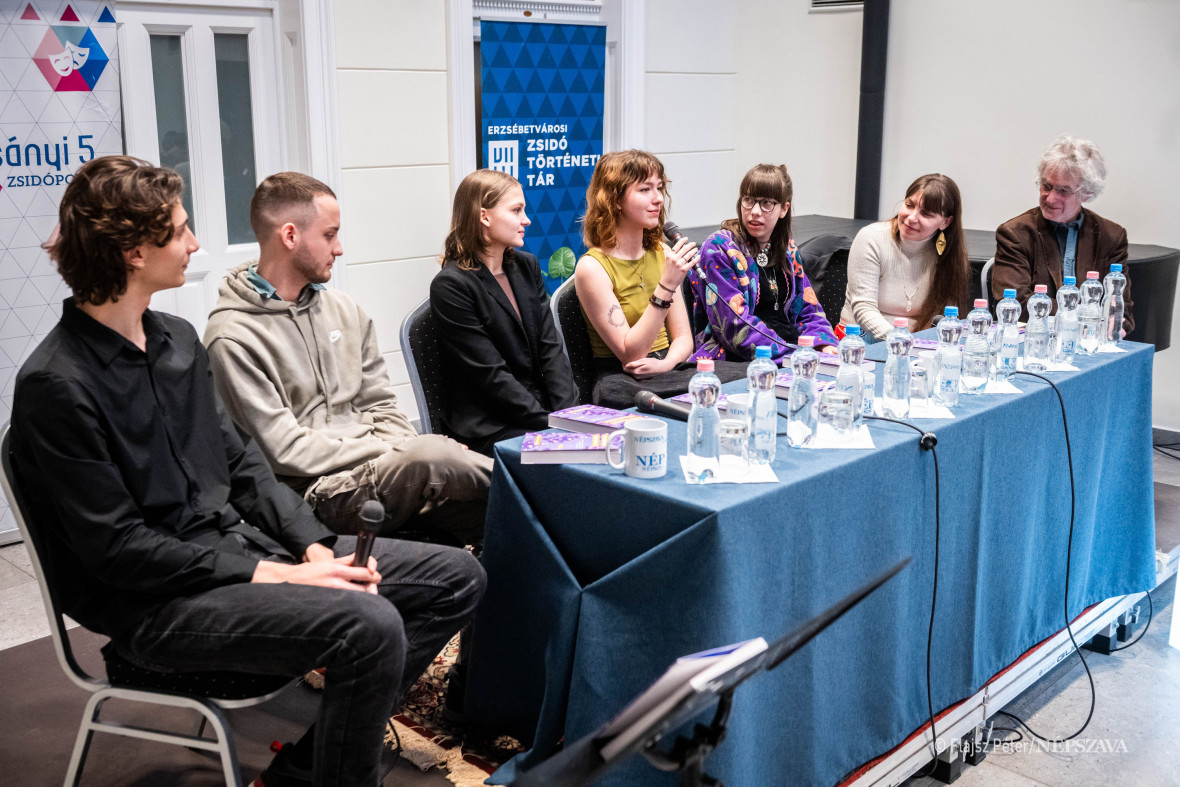 Balról jobbra: Kiss Bálint Béla, Fekete Gergő, Bolovits Bodza, Bátor Emma, Krolikowski L. Lilian, Bálint Orsolya és Upor László - Fotó: Népszava - Flajsz Péter